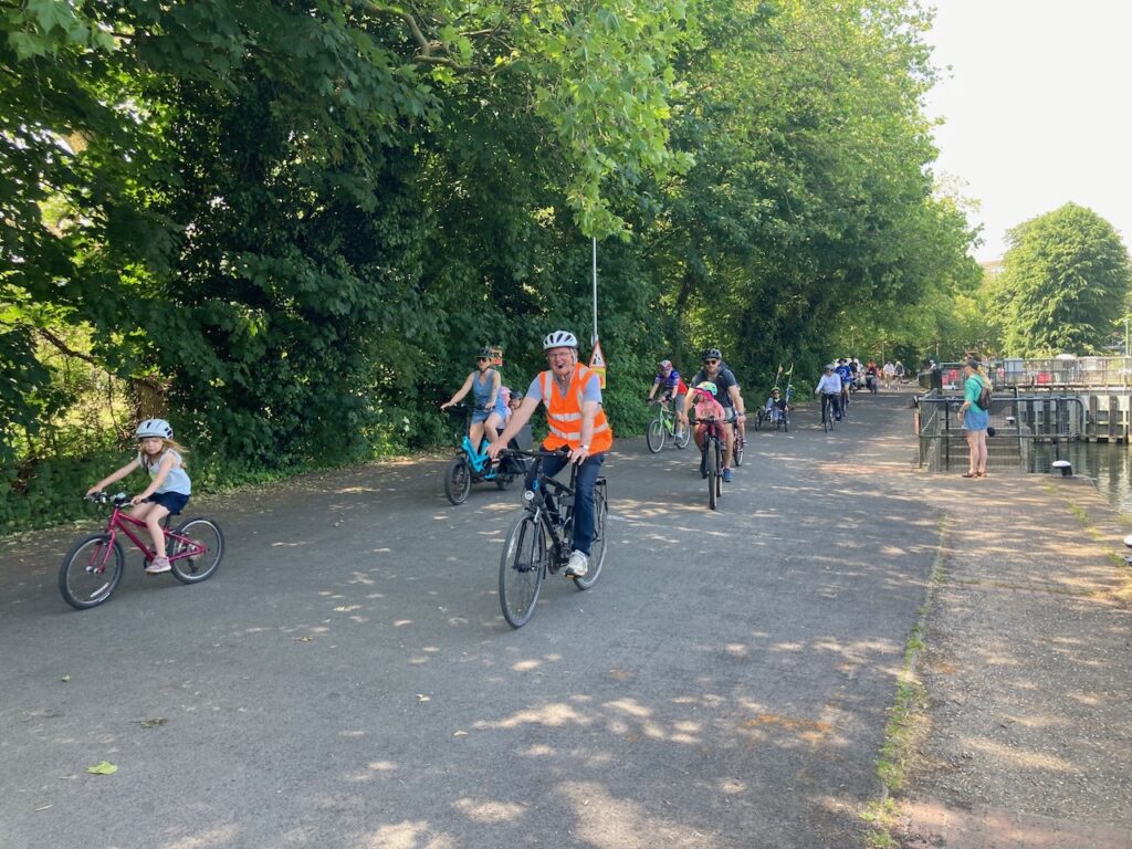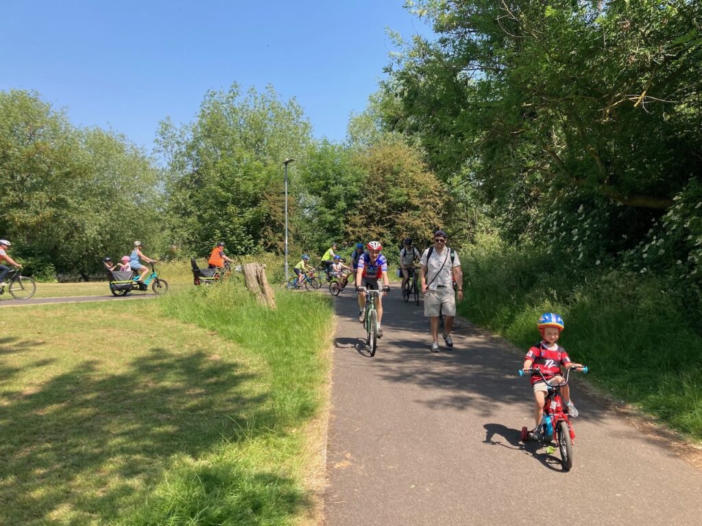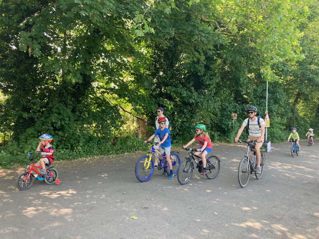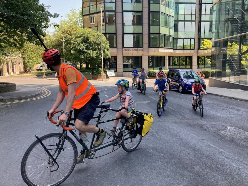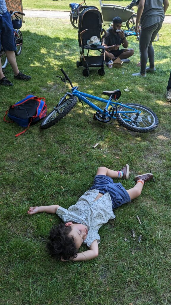 A few months later, the first COVID lockdown happened and traffic nearly disappeared. We bought the cargo bike and went cycling frequently, exploring the landscape on beautiful country roads. None of that is possible in the same way any more but it showed what it could be like. So, when Simon told us about the initiative to set up Kidical Mass, we were immediately on board and have been since the first Reading ride (sadly missed a few in-between, though). Back then, our little one was still on a balance bike but managed to ride about half the length on her own, before enjoying the rest comfortably in the cargo bike, watching her older sister pedal along with the group.