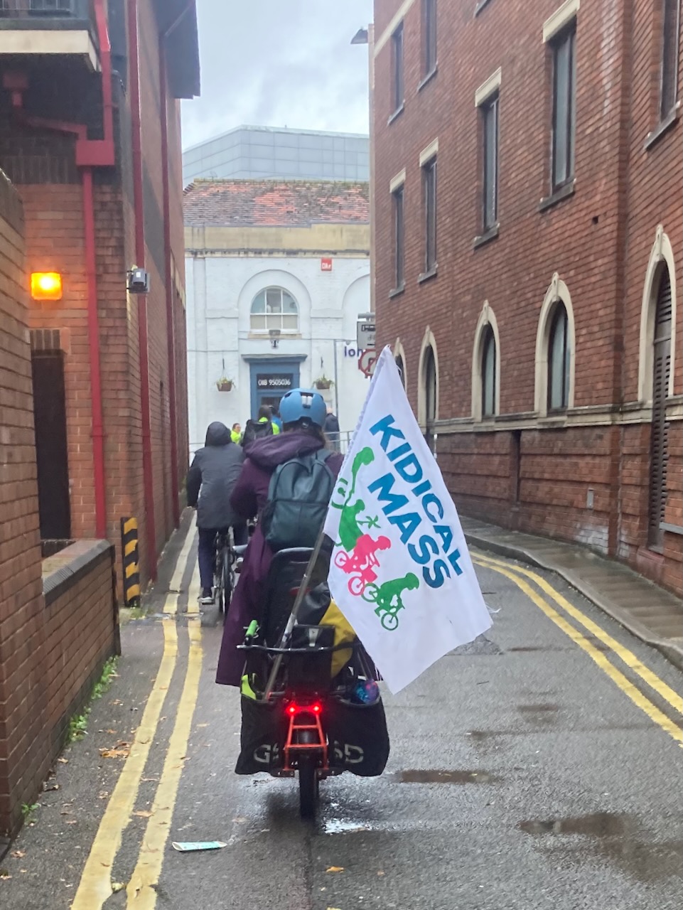 The bike hub is on Duke Street, in what was the old Mothercare unit. It’s a very large shop and there’s a cycling track taped out on the floor at the back of the shop. It’s free to use whenever the hub is open and is the perfect (large, dry, heated, indoor) space for an aspiring balance biker to practice their skills. However, it seems to attract larger children too – or certainly it pulled mine in, they spent longer riding the course than they had on the actual Kidical Mass ride! No complaints here as it let the grown ups sit on the (comfy) sofas and drink coffee from one of the nearby shops whilst we planned the next ride.