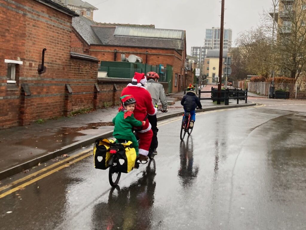 We’ve generally enjoyed seeing the cyclists out and about on Reading’s roads, even in cold, wet weather – just today my bike was one of three cargo bikes for carrying children parked outside a local shop, and one of my youngest’s friends at school was excitedly showing off his new pedal bike.